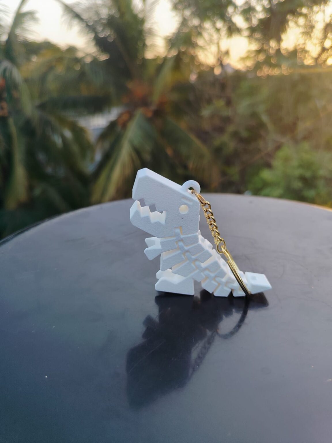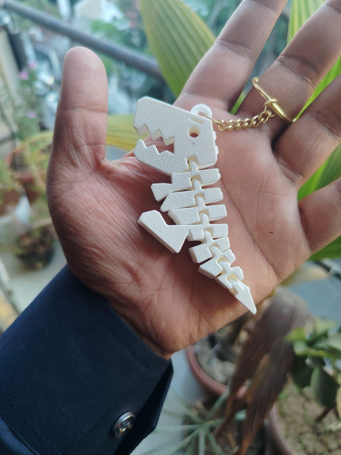 Bring a fun and playful vibe to your everyday essentials with this Flexi Dino Keychain. Designed as a cute mini T-Rex, this 3D-printed keychain features an articulated body that moves smoothly, making it both engaging and unique.