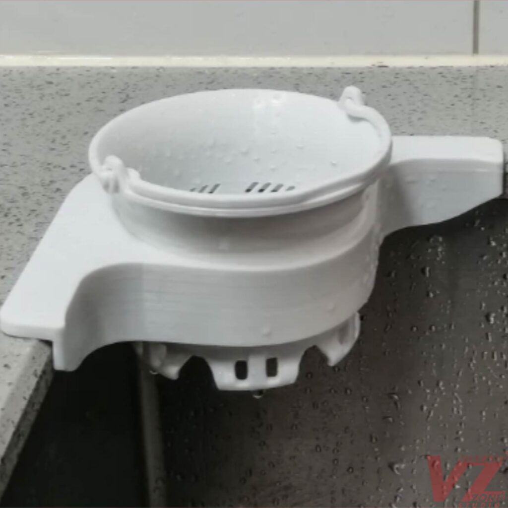 Make your kitchen smarter and cleaner with SinkMate, a 3D printed corner sink strainer designed to keep your sink area organized and mess-free.